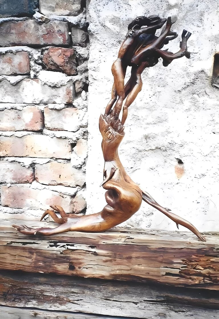 Mi tío Raquel fue otra gran influencia; él poseía una habilidad nata para transformar la piedra en arte sin que nadie se lo enseñara. Crecí en ese ambiente, donde la necesidad y la creatividad se abrazaban. Con el tiempo, mi mirada se agudizó: aprendí a encontrar figuras abstractas en los abultamientos de la "yerba azul" y en las ramas de los arbustos. Hoy, sigo conservando esa costumbre de hallar historias escondidas en los troncos, un legado familiar que define quién soy y el arte que comparto con el mundo.